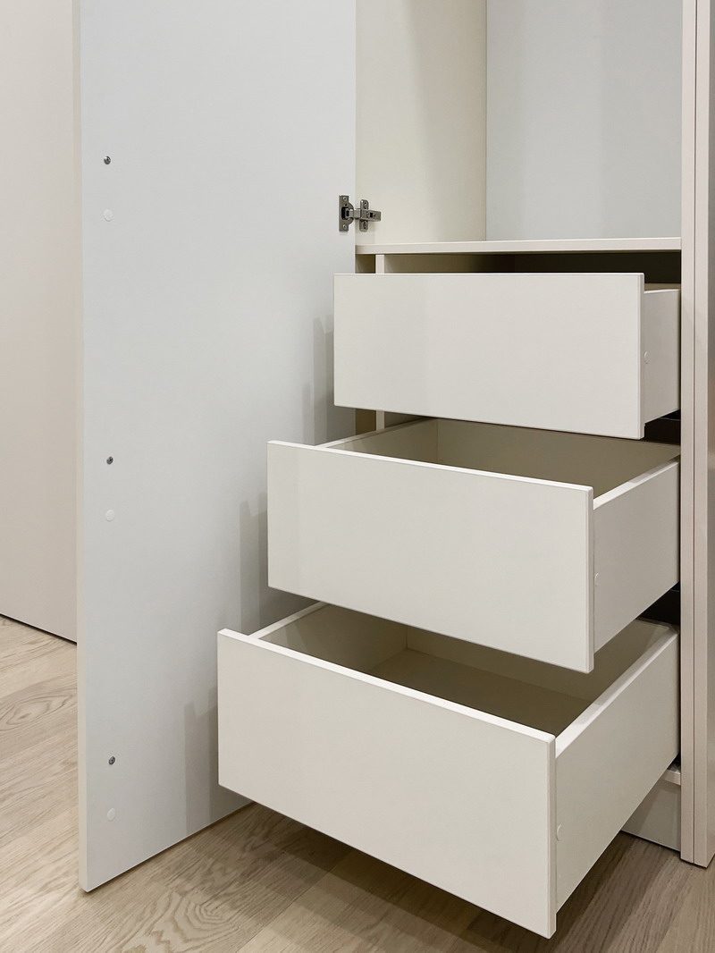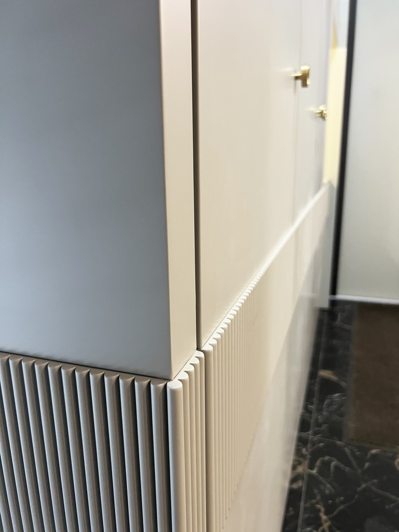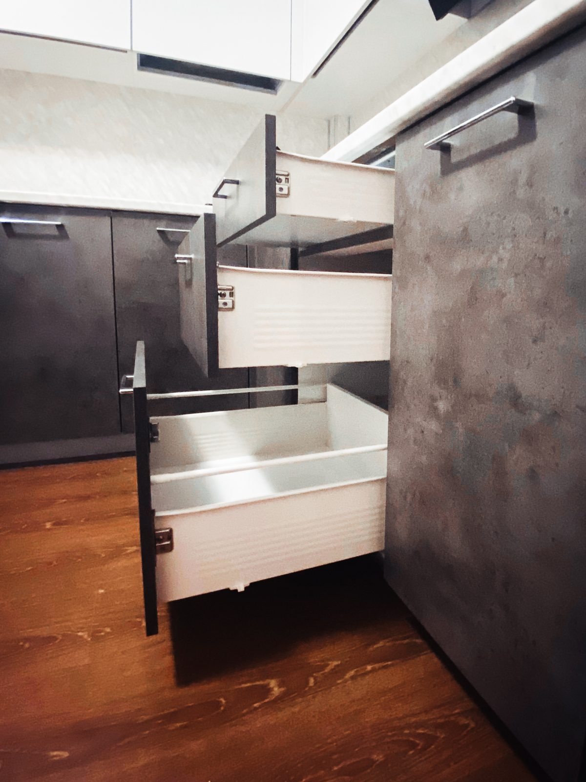 Мы используем в работе многие материалы, в том числе ДСП и МДФ. ДСП-древесно стружечная плита, МДФ-древесно волокнистая плита, основу которой составляют высушенные волокна древесины и специальное связующее вещество природного происхождения. МДФ-более плотный материал, что позволяет реализовывать на нём фрезеровки любой сложности, поэтому он чаще используется для производства мебельных фасадов. МДФ менее подвержен разбуханию от воздействия влаги в воздухе, более устойчив к различным грибкам и микроорганизмам, но является более дорогостоящим материалом по сравнению с ДСП, так что идеальное сочетание в мебели: корпус из ДСП, фасады из МДФ.