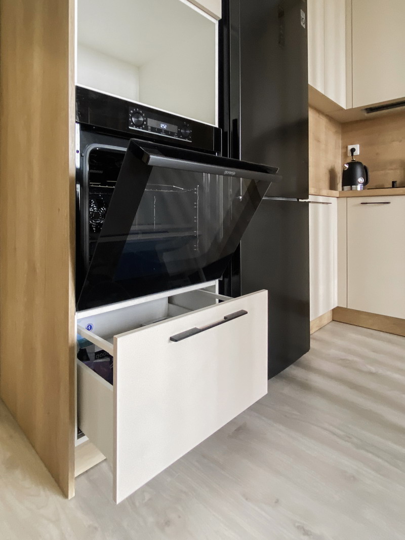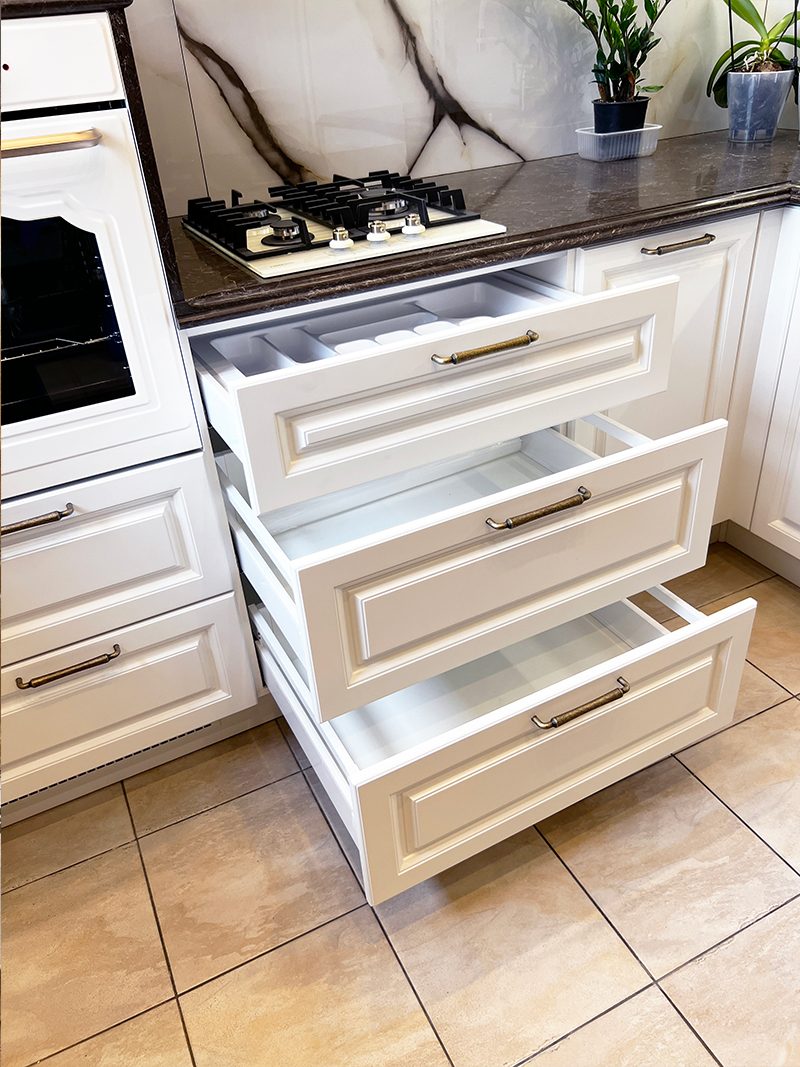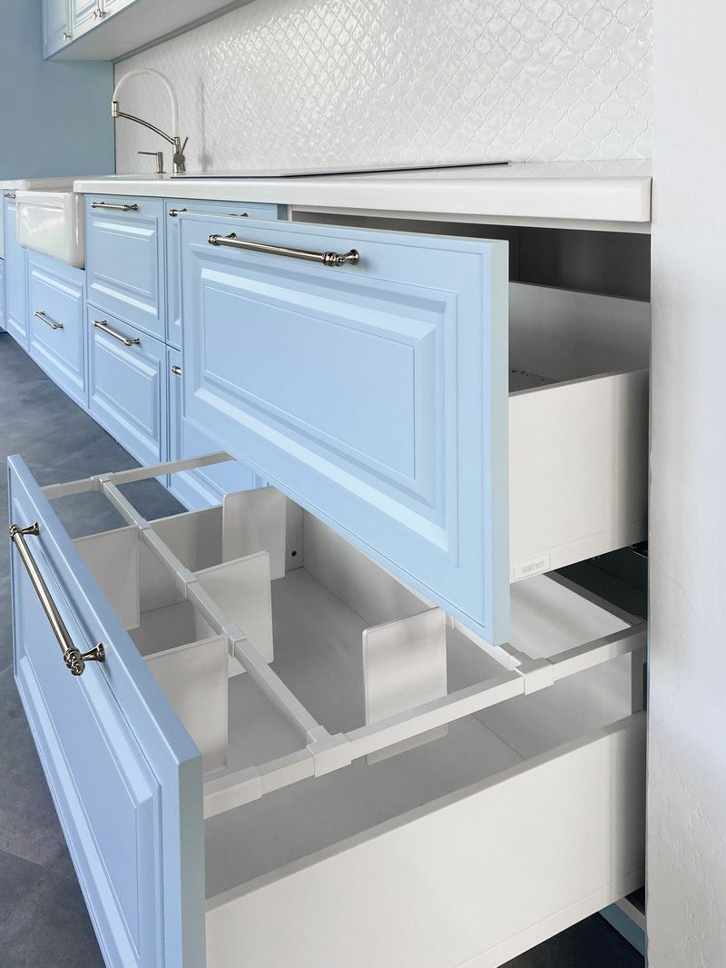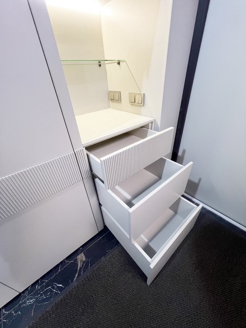 Мы используем в работе многие материалы, в том числе ДСП и МДФ. ДСП-древесно стружечная плита, МДФ-древесно волокнистая плита, основу которой составляют высушенные волокна древесины и специальное связующее вещество природного происхождения. МДФ-более плотный материал, что позволяет реализовывать на нём фрезеровки любой сложности, поэтому он чаще используется для производства мебельных фасадов. МДФ менее подвержен разбуханию от воздействия влаги в воздухе, более устойчив к различным грибкам и микроорганизмам, но является более дорогостоящим материалом по сравнению с ДСП, так что идеальное сочетание в мебели: корпус из ДСП, фасады из МДФ.