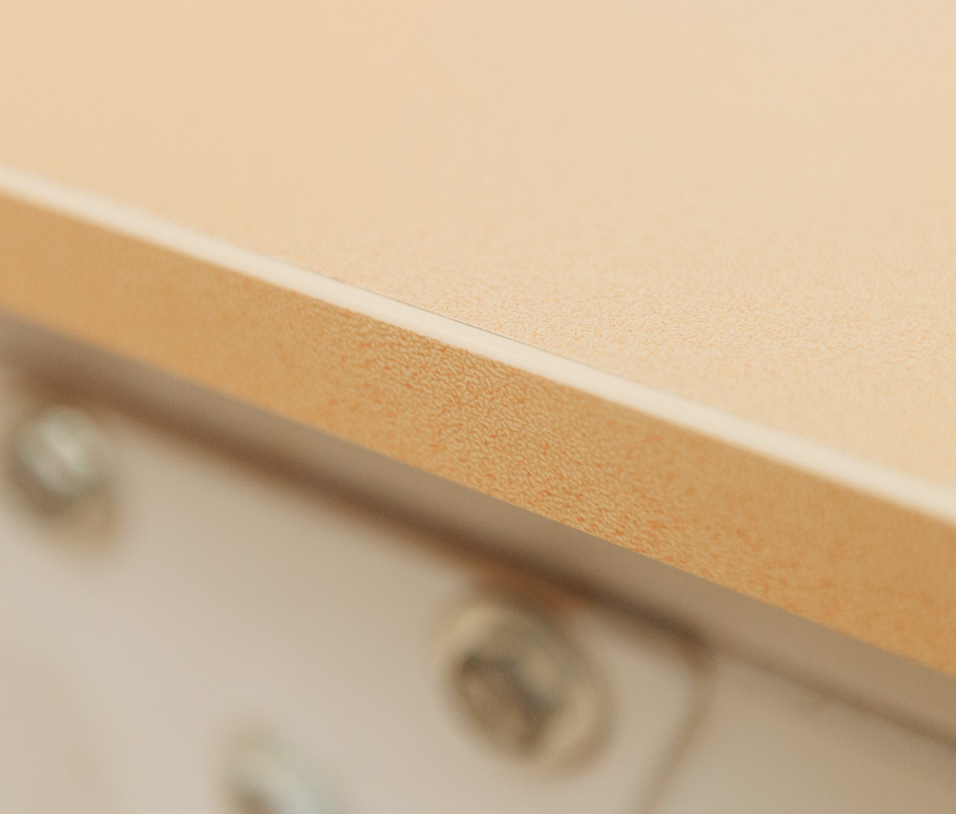 Особенности, конечно, есть. Материал, применяемый для изготовления корпуса предмета, будь то кухня или шкаф, ламинирован слоем 0,01 мм покрытие столешницы из ЛДСП составляет 0,1 мм, более прочное покрытие не подверженное истиранию и потери цвета со временем. Поверхность столешницы выдерживает температуру от 100 до 200 градусов. Но надо учитывать, что недопустимо применять для чистки декоративной поверхности столешниц различные абразивные и моющие порошки, кислоты и щелочи, хлор, бром, фтор, аммиак, перекись водорода и любые бытовые очистители, состав которых неизвестен.