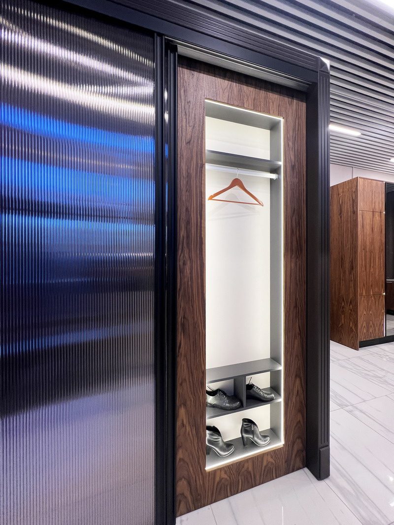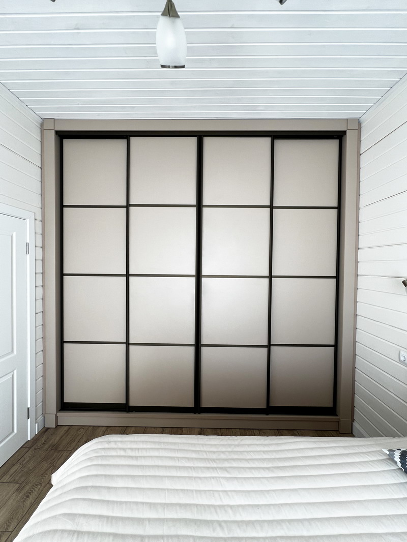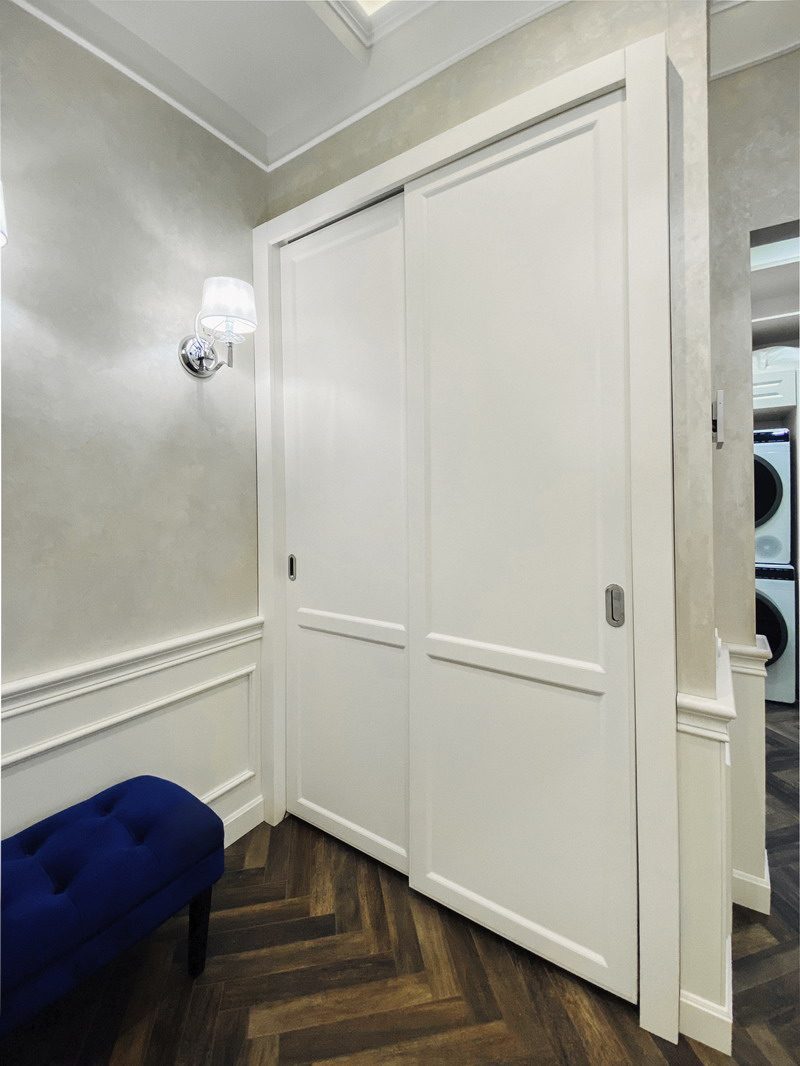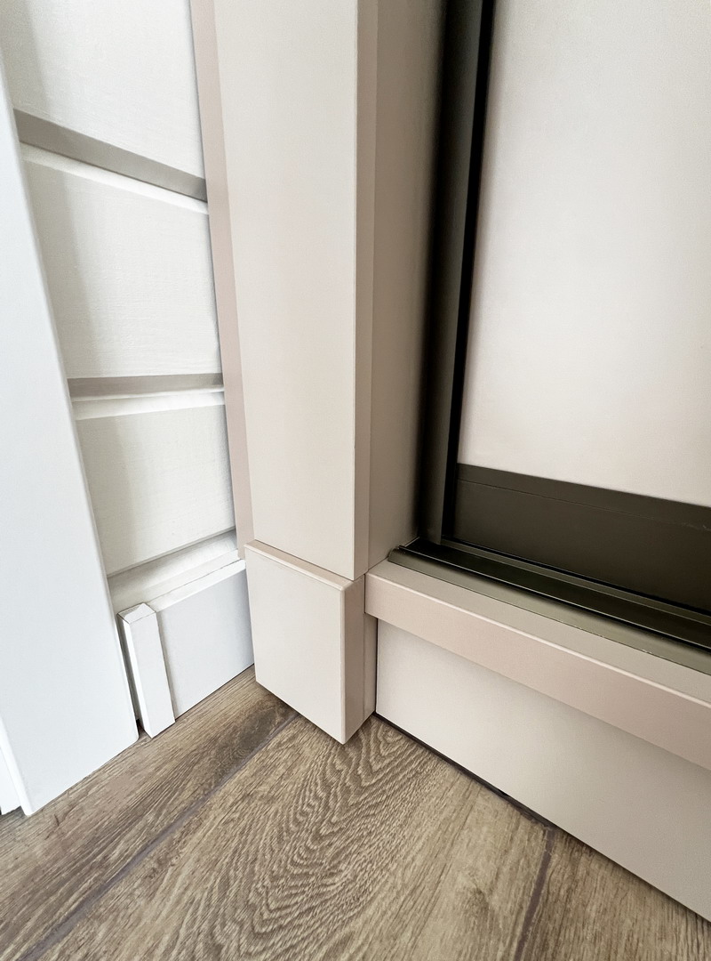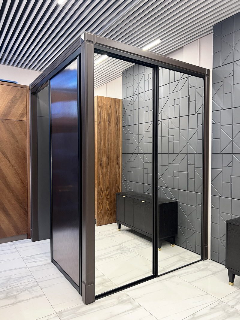 Для межкомнатных раздвижных перегородок можно использовать и двери-купе (2 рельса: верхний и нижний), и подвесные двери (1 рельс: только верхний). Лиговмебель использует в работе оба варианта механизмов, всё зависит от Вашего выбора и конструктивных особенностей помещения. Что касается стекла, то оно должно быть защищено, в целях безопасности, обязательно. Обеспечивается это, например, наклеиванием специальной плёнки на обратную сторону стекла. Плёнка может быть совершенно прозрачной и незаметной, а также матовой или многих других расцветок.
