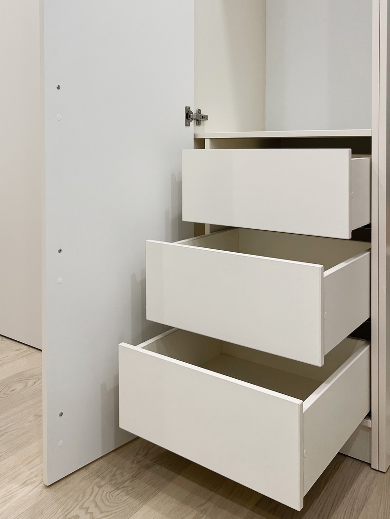 Гардеробный шкаф создан для квартиры с открытой планировкой и воплощает идеальный баланс стиля и практичности.