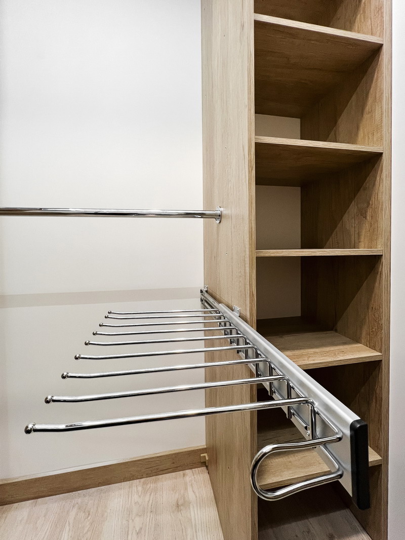 Гардеробная идеально подходит для небольших пространств, так как отсутствие громоздких деталей визуально расширяют границы комнаты.
