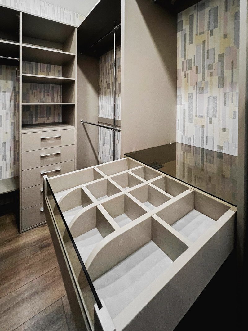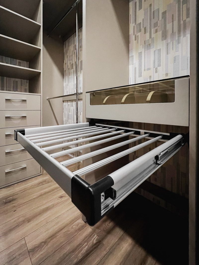 Гардеробная комната на заказ в скандинавском стиле создает светлую, функциональную и гармоничную атмосферу, наполняя пространство ощущением порядка и чистоты.